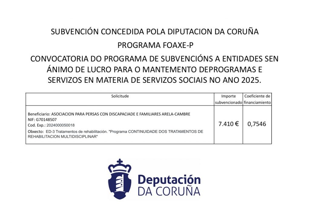 SUBVENCIÓN CONCEDIDA POLA DIPUTACIÓN DA CORUÑA PROGRAMA FOAXE-P 2025